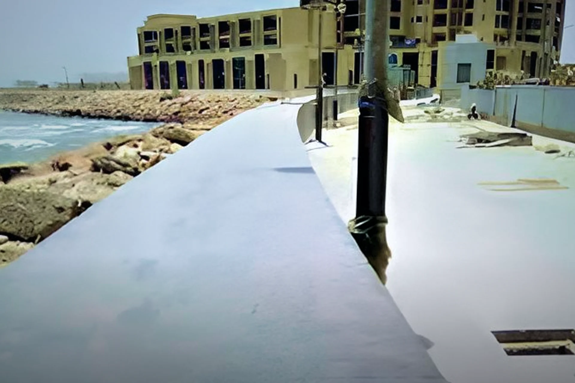 The construction scope included significant civil execution beyond pipe laying, involving pouring Slab on grade for large promenade sections. The project then transitioned to high-end aesthetic finishes essential for the final presentation of the coastal space.